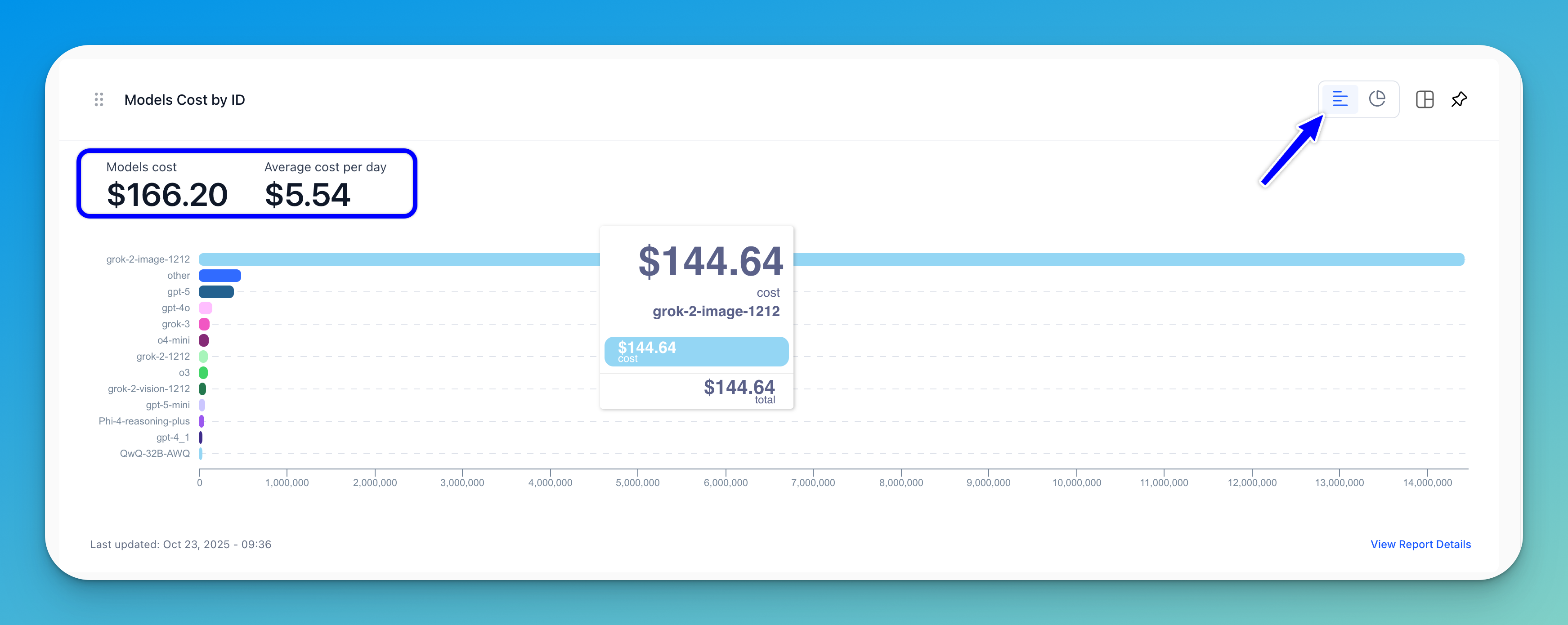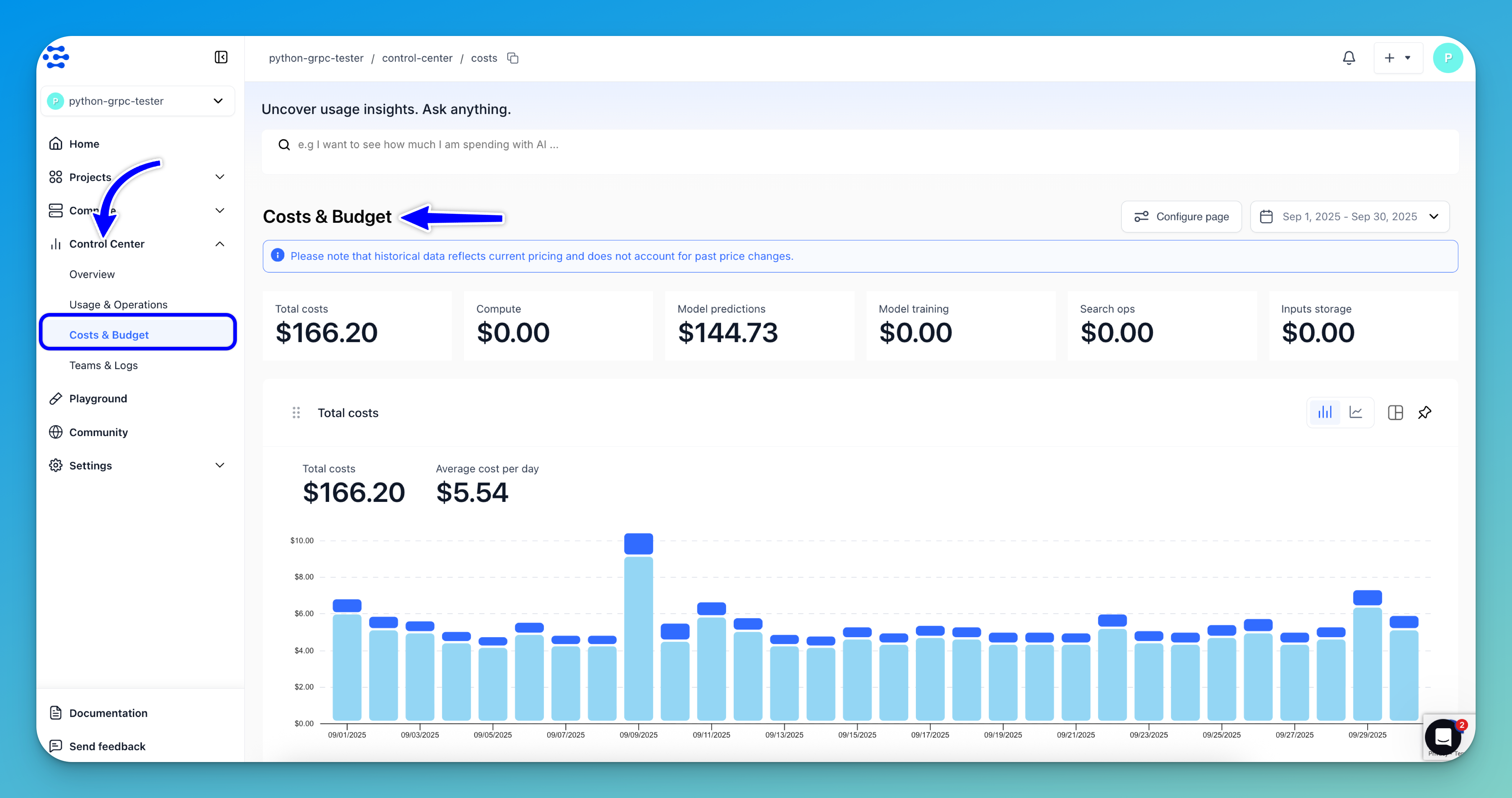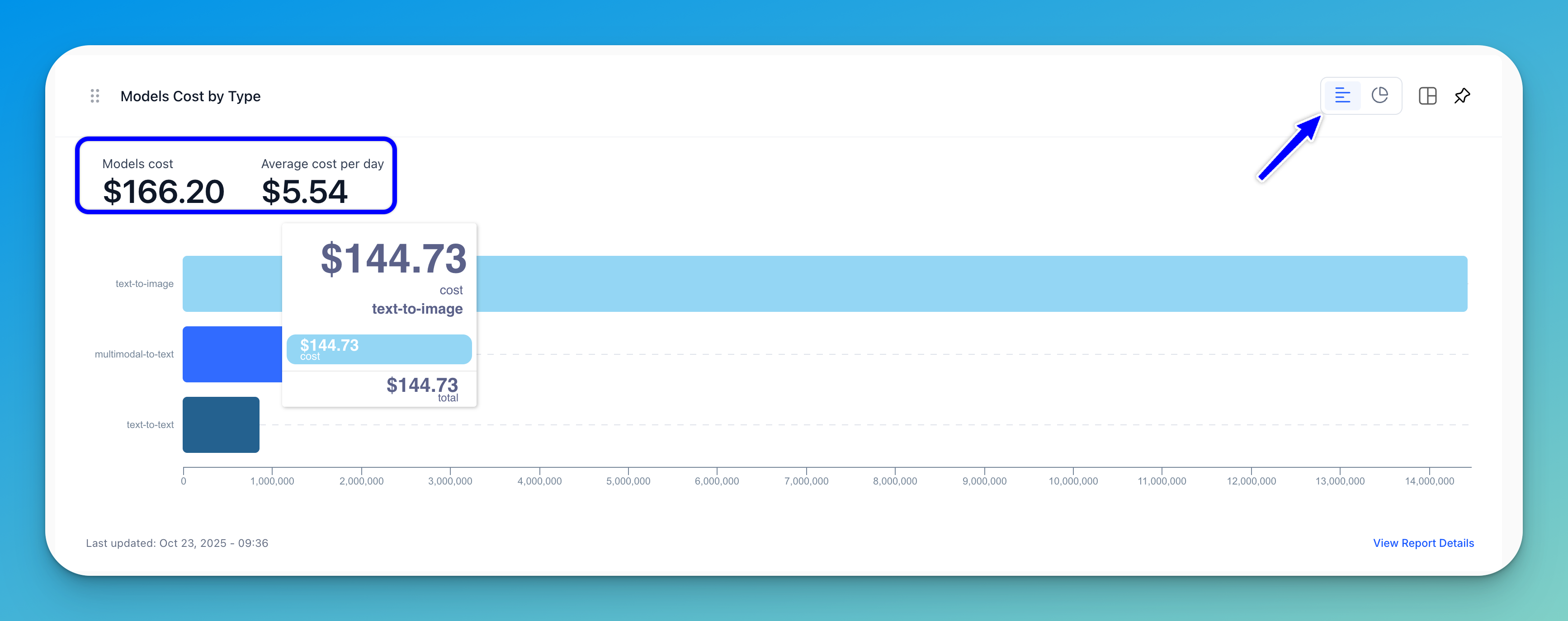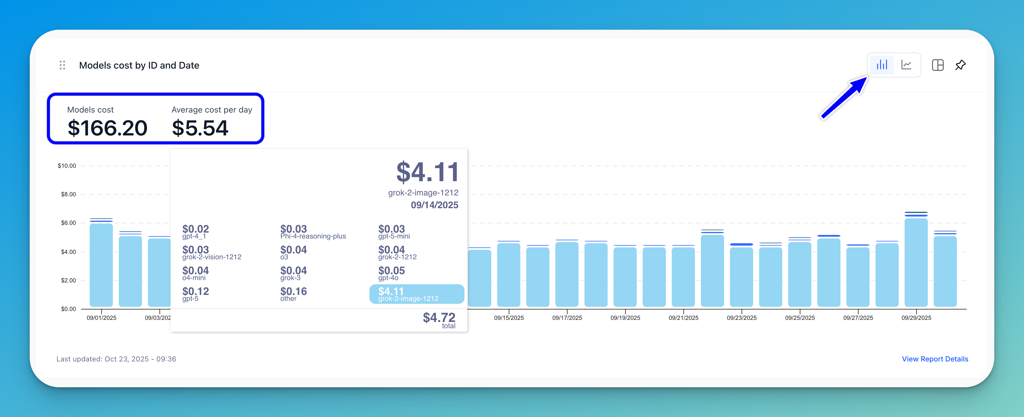 This section displays the total cost of all your model predictions, along with the average daily cost, during the selected time period.