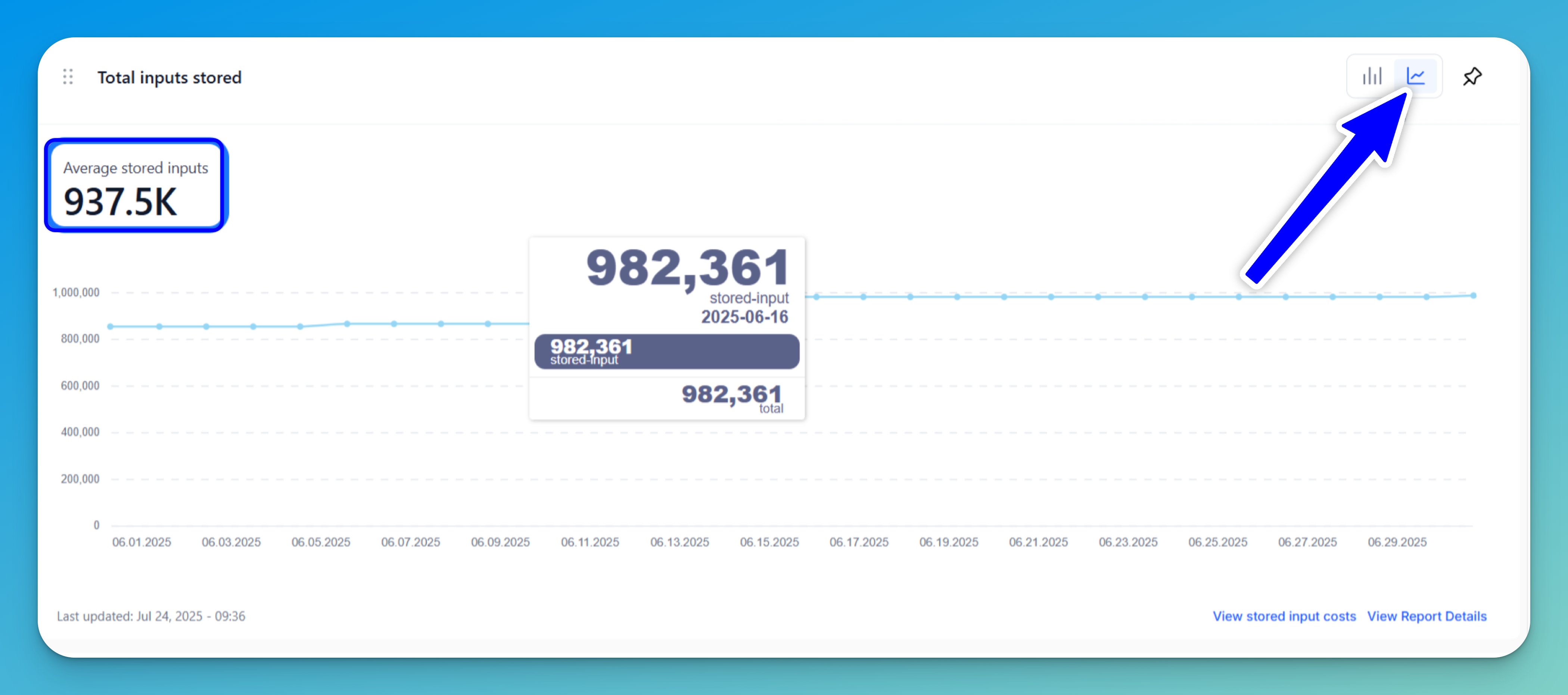 Pin icon — The pin icon allows you to "pin" or "save" charts for quick access. If you click it, the chart will be displayed in the Overview section within the Control Center. This ensures that it remains easily accessible in the Control Center. If the pin icon is highlighted in the Usage & Operations page, it indicates that the respective chart has already been saved to the Overview section.