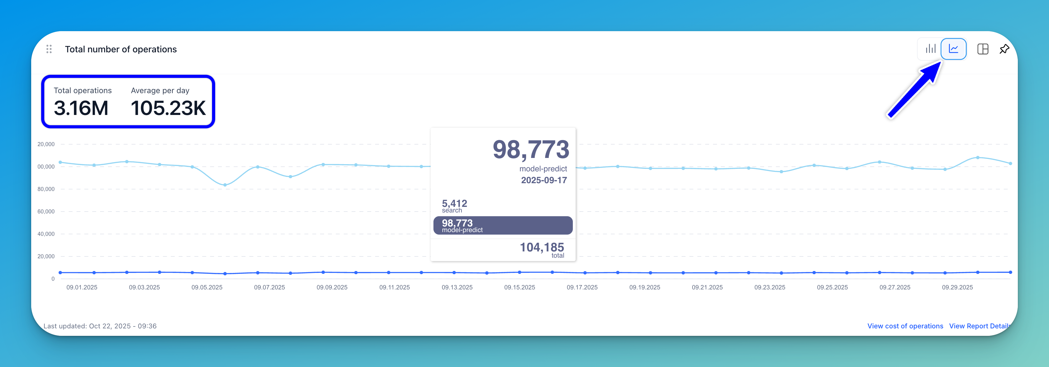 This section shows the total number of operations you've performed, along with the daily average, during the selected time period. It includes both model predictions and search operations.